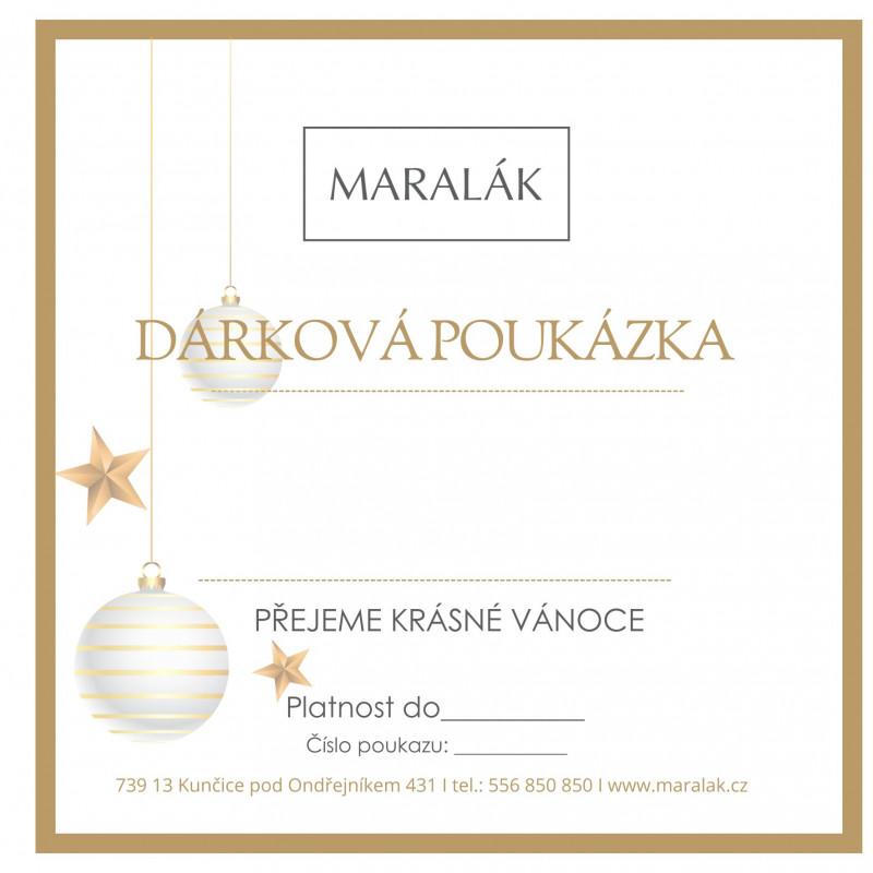 Dárkové poukazy můžete objednávat na mailu: maralak@maralak.cz, nebo na telefonu 556 850 850.